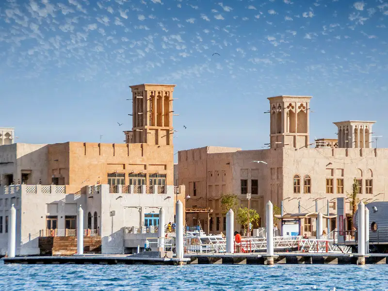 Nel pomeriggio, visita Al Seef Heritage, una zona moderna costruita in stile tradizionale che affaccia sul Creek, perfetta per una passeggiata tra boutique e caffè con vista mozzafiato.