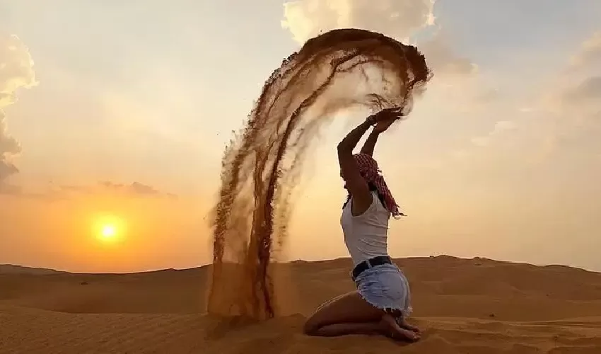 Nel primo pomeriggio, verrai prelevato dal tuo hotel a bordo di un’elegante Jeep 4x4 per un’avventura tra le dune dorate del deserto. Ti aspetta un percorso mozzafiato tra montagne di sabbia e paesaggi infiniti, con soste per ammirare il magnifico tramonto del deserto arabo — un momento perfetto per immortalare la magia di Dubai nella sua essenza più pura.