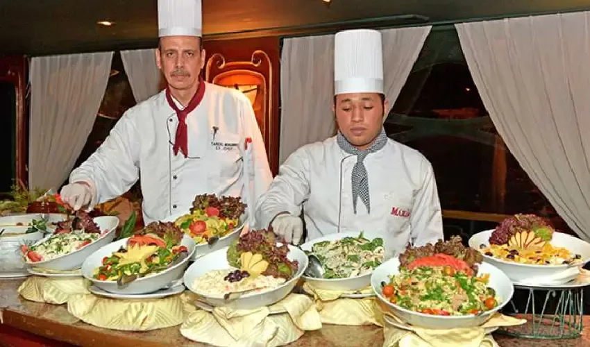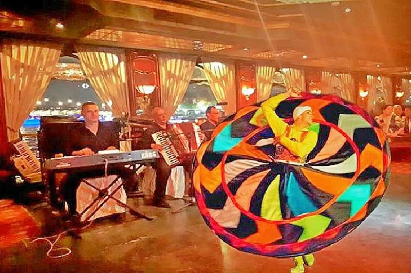 Intanto, dal ponte della nave, il panorama del Cairo illuminato di notte ti lascerà senza fiato, offrendoti scenari che resteranno impressi nella memoria. Una serata che combina gusto, divertimento e suggestione, perfetta per coppie, famiglie e chiunque voglia vivere il Nilo in una dimensione tutta nuova.