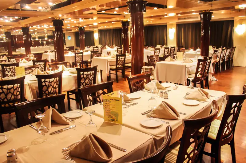 Sarai accolto in un’atmosfera raffinata dove potrai assaporare un ricco buffet di specialità egiziane e internazionali, mentre lo spettacolo prende vita davanti ai tuoi occhi: danza del ventre, folclore Tannoura e musica dal vivo creeranno un mix indimenticabile di cultura e intrattenimento.