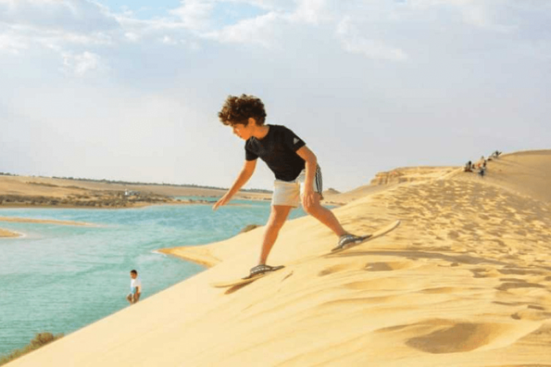 Dopo la visita, raggiungerai la Magic Lake, un’incantevole oasi naturale dove ti attenderà un pranzo barbecue in un’atmosfera rilassata e autentica. Chi lo desidera potrà partecipare a un emozionante safari nel deserto o provare il sandboarding sulle dune dorate (attività facoltative).