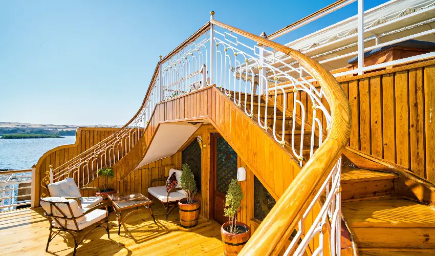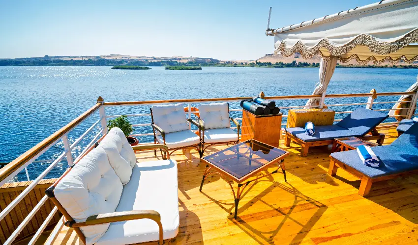 Goditi il sole, la brezza del Nilo e il comfort della vita a bordo mentre il viaggio volge lentamente al termine.