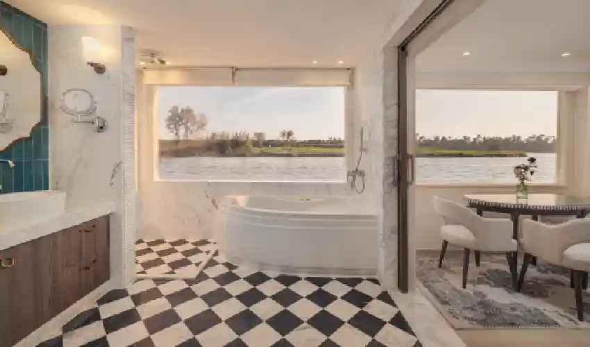 Le 10 cabine Deluxe, ampie 22,8 m², offrono un perfetto equilibrio tra eleganza e comfort, pensate per regalarti un soggiorno rilassante mentre il Nilo scorre davanti ai tuoi occhi.
