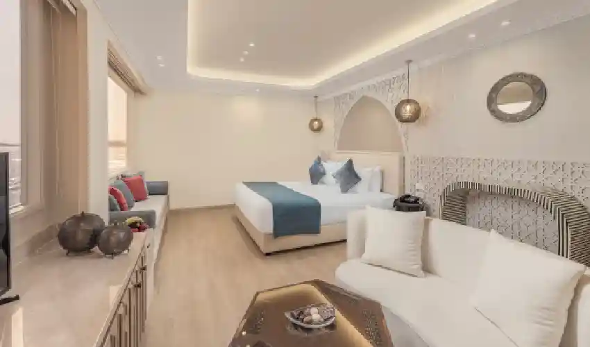 Con i suoi 60 metri di lunghezza e 9 metri di larghezza, la Dahabeya Nawara offre ampi spazi e un design elegante pensato per il massimo comfort. A bordo troverai due ponti principali e un ampio Sun Deck panoramico, il luogo perfetto per rilassarti mentre ammiri i tramonti dorati sul Nilo e i panorami spettacolari che scorrono lentamente durante la navigazione.