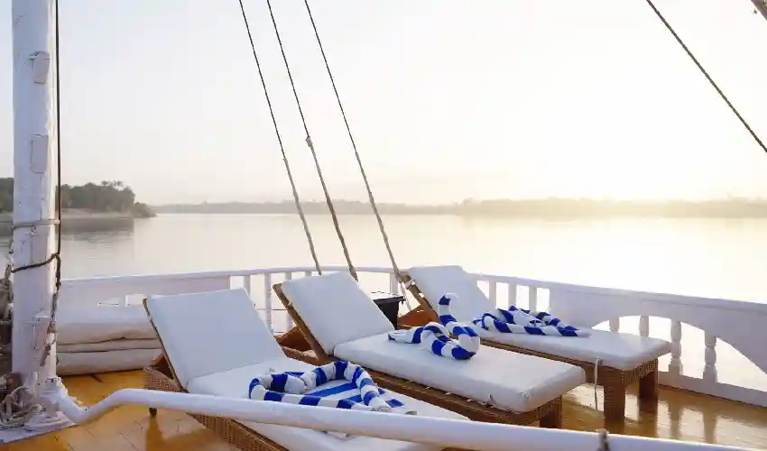 Il grande sundeck di 29 metri è il luogo perfetto per lasciarti cullare dalla bellezza del paesaggio. Tra aree ombreggiate e spazi assolati, potrai rilassarti mentre il Nilo scorre davanti ai tuoi occhi in tutto il suo splendore.